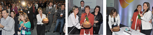 Momentos de descontração e emoção: Profa. Themis Reverbel da Silveira, presidente da Comissão Científica do VIII Gongresso e aniversariante do dia, foi homenageada pela diretoria da SPRS e pelos demais colegas presentes |