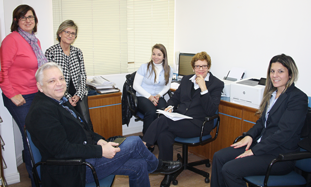 | Presidente conheceu as instalações da SBP em Porto Alegre. Da esq. p/ dir.: Dr. Paulo Nader, Dra. Helena Müller, Dra. Cristina Targa Ferreira, Clarissa Fridrich, Dra. Luciana Silva e Adriana Vergottini |